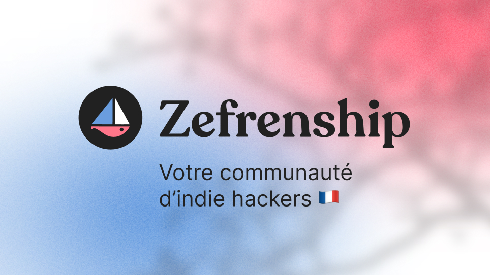 Zefrenship est une communauté de soloprenariat Française ouverte à toutes et tous. Rejoignez-nous pour partager vos expériences, faire grandir vos projets et rencontrer d'autres Indie Hackers 😊.